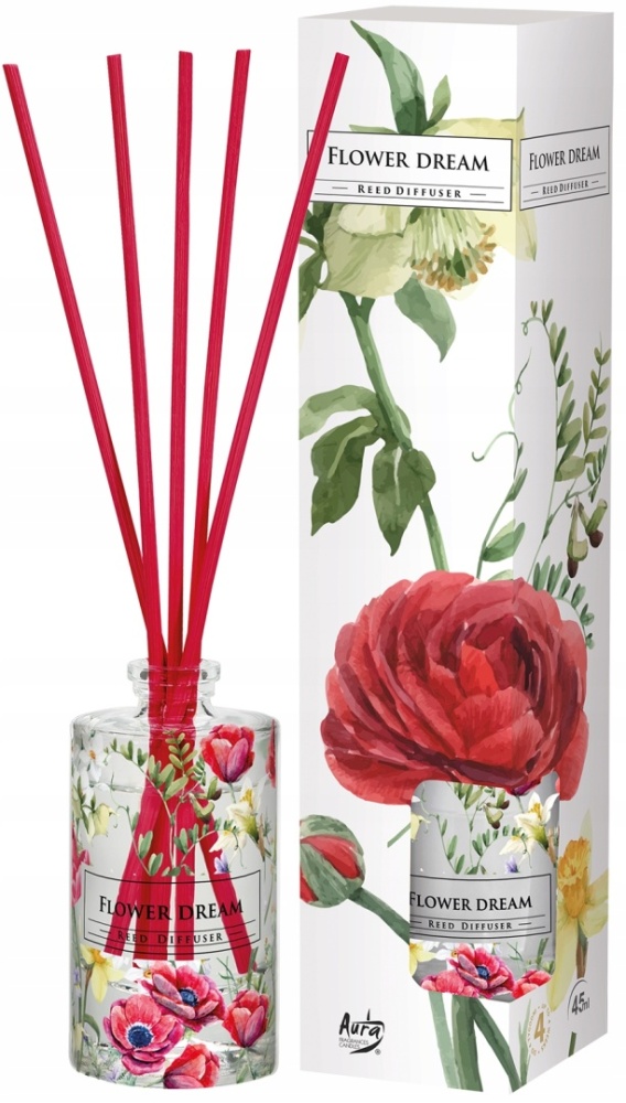 Dyfuzor zapachowy z patyczkami, kwiatowe marzenie o pojemności 45ml i trwałości zapachu do 4 tygodni BISPOL.