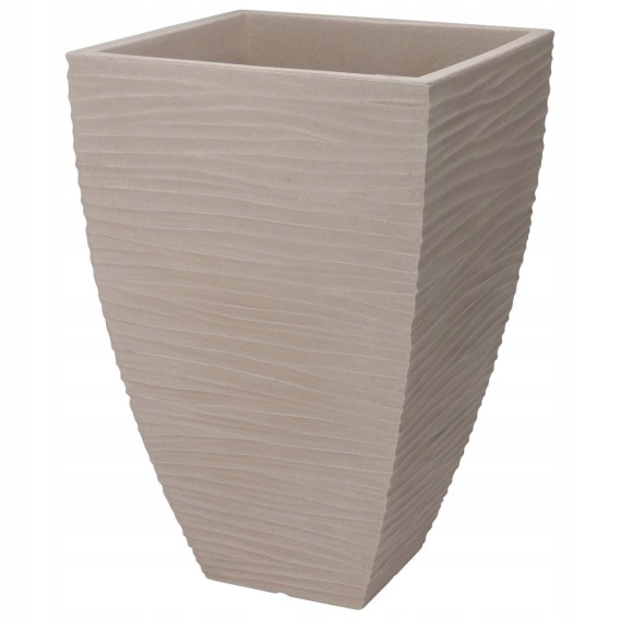 ✅ WYTRZYMAŁA - Wykonana z najwyższej jakości tworzywa imitującego kamień w kolorze beżowym. Tworzywo to jest lekkie, a jednocześnie bardzo wytrzymałe. Doniczka ma kwadratowy kształt i ozdobne przetłoczenia na całej powierzchni, dzięki czemu prezentuje się bardzo efektownie.