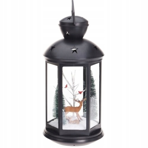 Lampion Świąteczny Czarny LED z Bałwanem - Dekoracja 43,5x22 cm