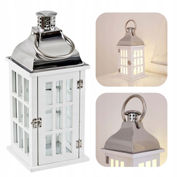 Lampion dekoracyjny biały 32cm z metalowym wykończeniem