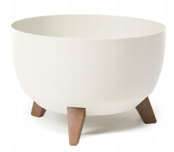 Pomysł na produkt, który prezentujemy zrodził się z obserwacji trendów wnętrzarskich. Nóżki wykonane z tworzywa eco z powodzeniem imitują drewno. To, w połączeniu z oryginalnym kształtem korpusu sprawia, że produkt będzie wyróżniał się na półce i  przyciągał wzrok. ​Misa jest produktem do samodzielnego montażu. Jest on bardzo prosty i nie wymaga użycia żadnych narzędzi. Wystarczy tylko wcisnąć nóżki.