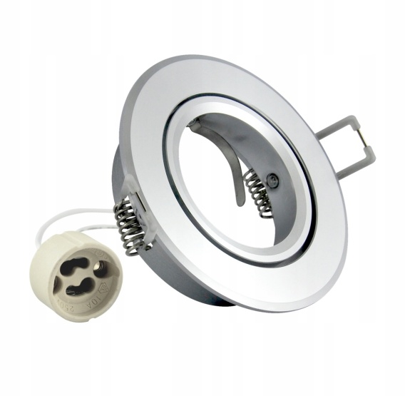 Polux Oczko ruchome EAST OPAL aluminium okrągłe srebrne połysk GU10Oprawa sufitowa z możliwością regulacji kąta padania światła. Obudowa wykonana z aluminium charakteryzuje się estetycznym wyglądem, dzięki czemu oczko pełni nie tylko funkcję oświetlenia punktowego, ale również eleganckiego dodatku. Źródło światła stanowi żarówka z gwintem GU10 do nabycia oddzielnie. Stopień ochrony przed wilgocią i zanieczyszczeniami: IP20.