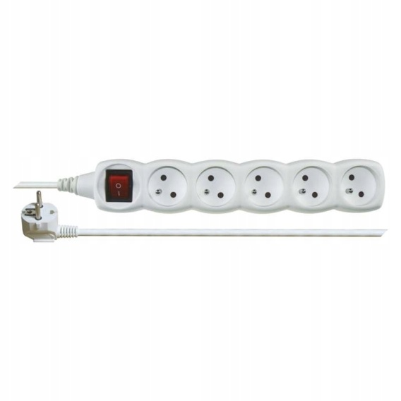Wysokiej jakości przedłużacz 5-gniazdowy domowy do zastosowań ogólnych. Uziemienie i przesłony torów prądowych to dodatkowe zabezpieczenie przed przypadkowym porażeniem. Gruby kabel 3x1mm² umożliwia zasilanie urządzeń o dużym obciążeniu (sumarycznie do 10A). Listwa zasilająca posiada włącznik/wyłącznik centralny, który jest podświetlany na czerwono (w pozycji włączonej).