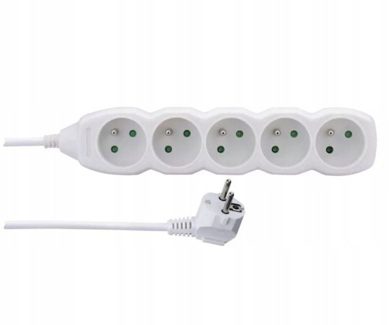 E. Przedłużacz 7 m / 5 gniazd / biały / PVC / 1 mm
