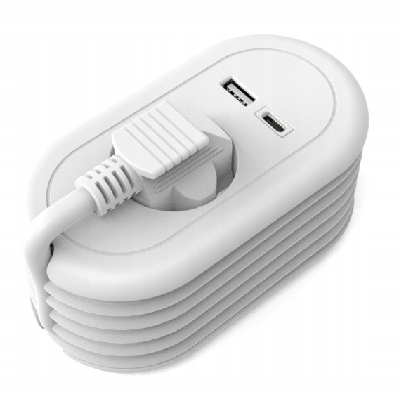 Przedłużacz pojedynczy z uziemieniem schuko, z ładowarką USB - A, USB - C.