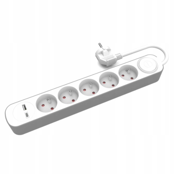 Przedłużacz stały z pięciokrotnym gniazdem wtyczkowym i włącznikiem or