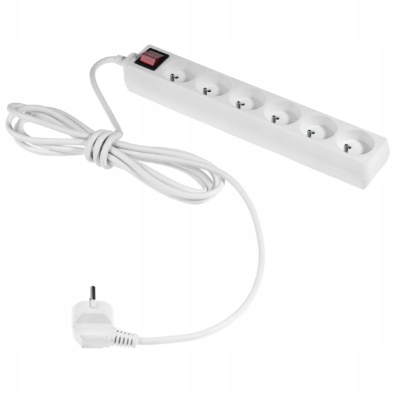 Przedłużacz z sześcioktotnym z wyłącznikiem ECO 6X2p+Z 10A 3m BIAŁY