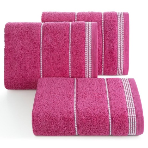Miękki, klasyczny ręcznik kąpielowy z chłonnej tkaniny bawełnianej frotte zdobiony subtelną, elegancką bordiurą. Jednokolorowy ręcznik nie farbuje. szerokość: 50 cm, długość: 90 cm, kolor: amarantowy, Gramatura: 500 GSM, Skład: 100%bawełna: 60%bawełna 40%poliester