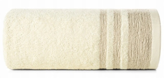 Ręcznik 50X90 kremowy miękki i puszysty z ozdobną bordiurą w paski