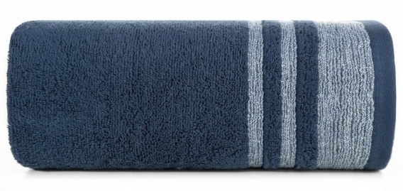 Ręcznik 50X90 granatowy miękki i puszysty z ozdobną bordiurą w paski