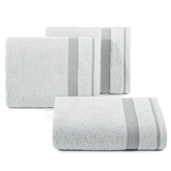 Ręcznik z ozdobną bordiurą w pasy szerokość: 50 cm, długość: 90 cm, kolor: srebrny, Gramatura: 500 GSM, Skład: 100% bawełna: 98,5% bawełna 1,5% poliester