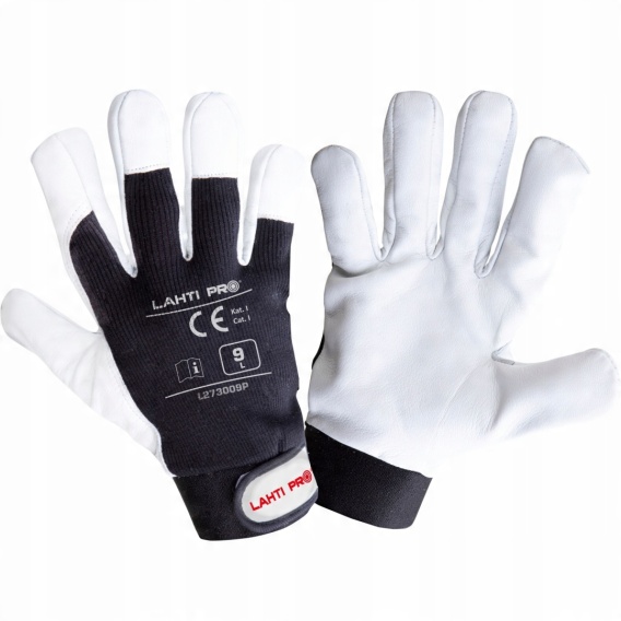 Rękawice robocze ochronne ze skóry koziej model Lahti Pro L2730 wykonano ze skóry koziej, bawełny oraz elastanu.
