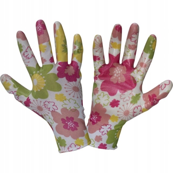 Rękawice nitrylowe z kwiatkami róż. Lahti, rozmiar 9