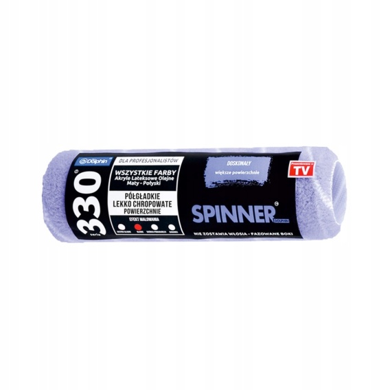Blue Dolphin 330 SPINNER to wałek malarski wykonany z innowacyjnego materiału, pokryty poliestrem, który lepiej chłonie i oddaje farbę, a przy tym nie zostawia włosia. Jego zaletą jest też nieskomplikowane mocowanie. Nawet przy wielokrotnym użyciu zachowuje swoją początkową puszystość. Dzięki zastosowaniu skosów na końcach wałka, wyeliminowane jest nawarstwianie się farby na krawędziach. Blue Dolphin 330 SPINNER to wyjątkowo trwały, łożyskowany i nylonowy cylinder z zatrzaskiem na wałek, który jest na stałe zamontowany na wytrzymałym, chromowanym profilu wyposażony w ergonomiczną rączkę. Jest on przeznaczony do malowania wszystkimi rodzajami farb po większych powierzchniach gładkich. Wałek ten maluje dając w efekcie wyjątkowo gładką powierzchnię.
