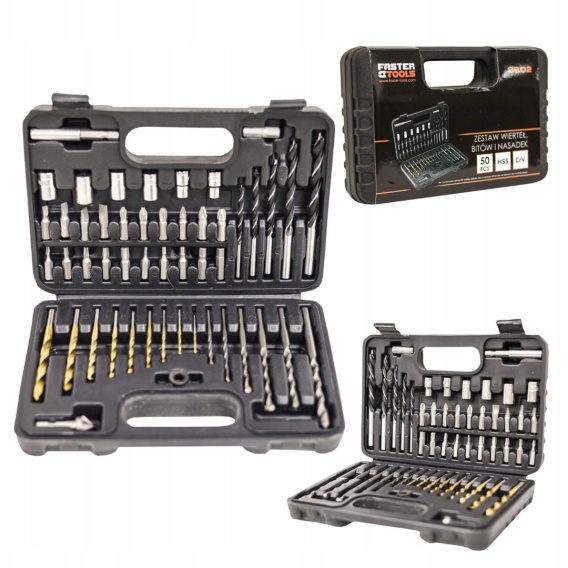 Zestaw wierteł, bitów i nasadek 50 elementów FASTER TOOLS